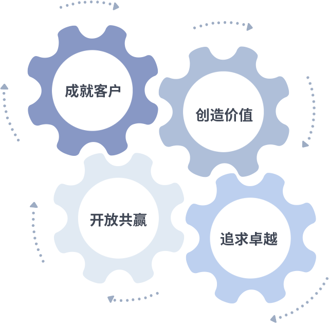成就客户是一切决策的出发点,创造价值是衡量所有工作的标准,追求卓越是BB电子做事做人的态度,开放共赢是BB电子的格局也是最终的结果。价值观的齿轮环环相扣,推动着组织里的每个人不断向前。